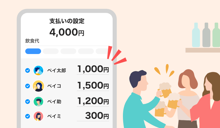 ②わりかんしたい金額を入力し、メンバー内で支払う金額を設定
