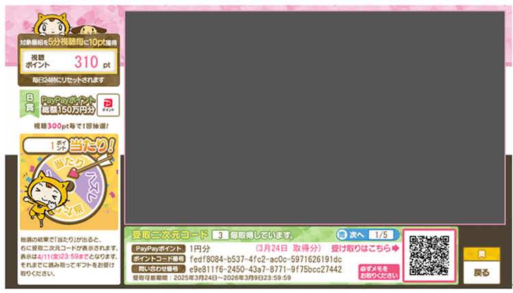 今回のキャンペーンでは、「PayPayポイントコード」を採用し、テレビ画面上で完結する新しい参加体験を実現しました。視聴に応じてテレビ内でポイントが貯まり、そのポイントを使ってテレビ画面上でくじ引きを行うと、当選時にはその場でPayPayポイントが受け取れる仕組みです。郵送や個人情報入力が不要となり、参加者の負担を大幅に軽減しました。