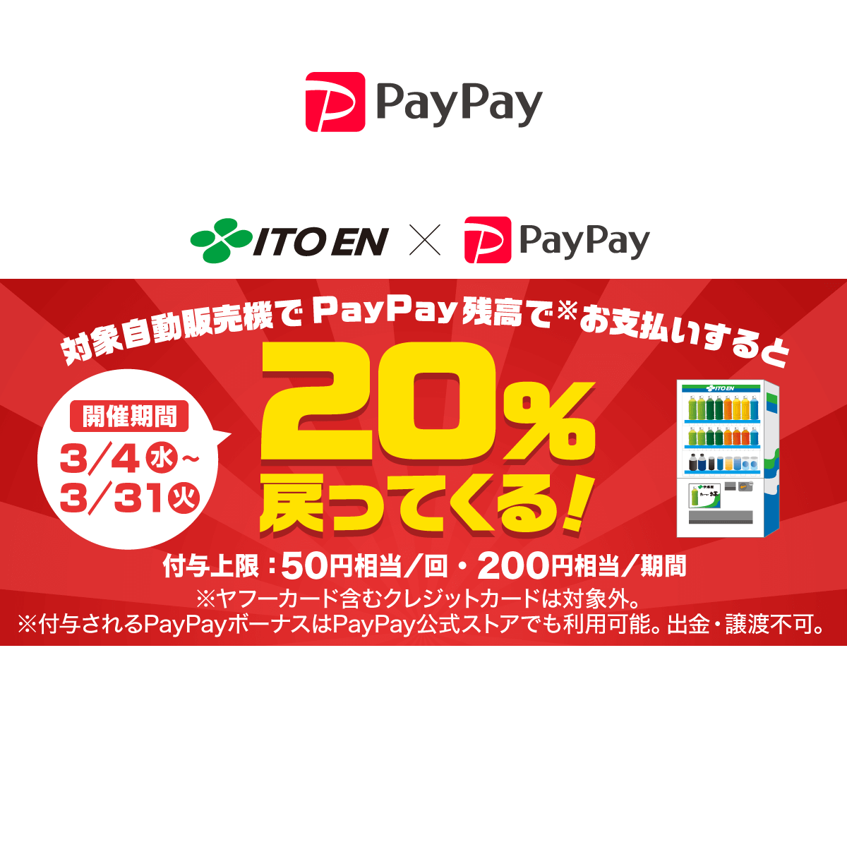 伊藤園の対象自販機で最大20%戻ってくるキャンペーン