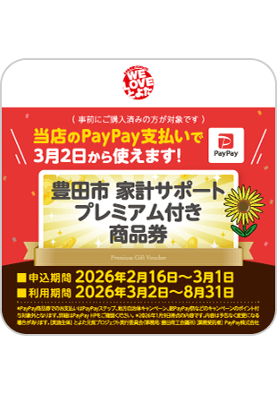 PayPay商品券での支払いは、キャンペーンの適用対象外です。