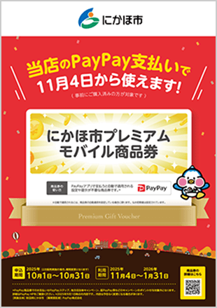 申し込みのうえ購入権を取得した秋田県にかほ市在住の方は、PayPayアプリから300円分のプレミアムが付いた1,300円分のにかほ市プレミアムモバイル商品券(PayPay商品券)を1,000円で購入可能となります。