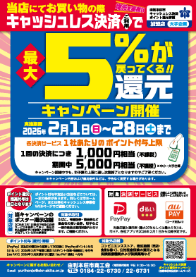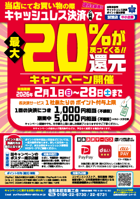 由利本荘市 中小企業で最大20%、大手企業で最大5%が戻ってくるキャンペーン