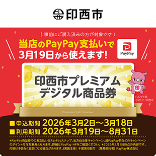 千葉県印西市のPayPay加盟店で使えます。(一部を除く)