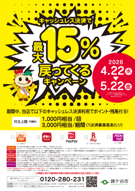 キャッシュレス決済で最大15%戻ってくるキャンペーン