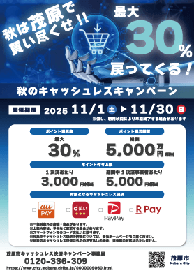 秋は茂原で買い尽くせ!!最大30%戻ってくる!秋のキャッシュレスキャンペーン