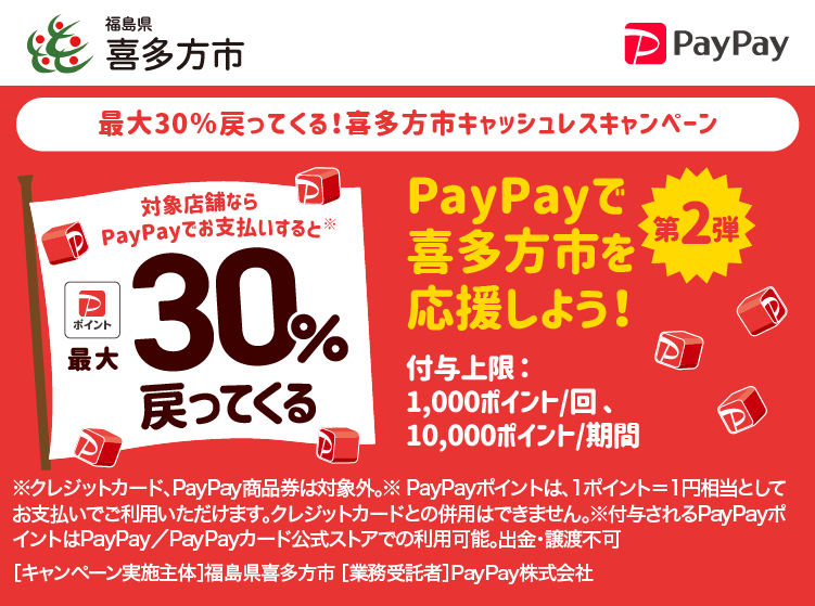 最大30%戻ってくる!喜多方市キャッシュレスキャンペーン規約