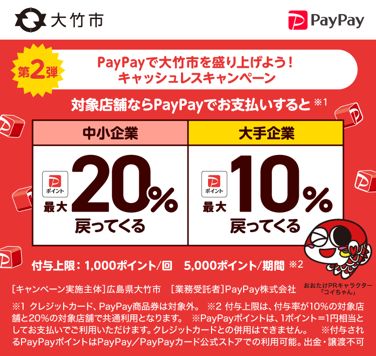 PayPayで大竹市を盛り上げよう!キャッシュレスキャンペーン!規約