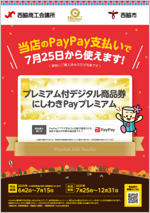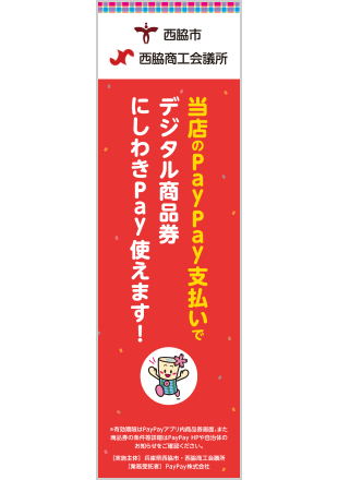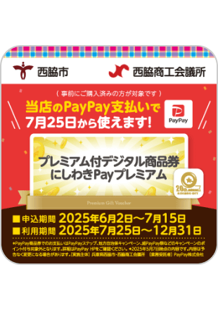 プレミアム付デジタル商品券 にしわきPayプレミアム取扱店舗でお使いいただけます(一部を除く)。