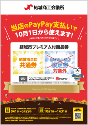 PayPay取扱店のうち、結城市小型店限定券の対象店舗で使えます。