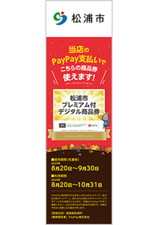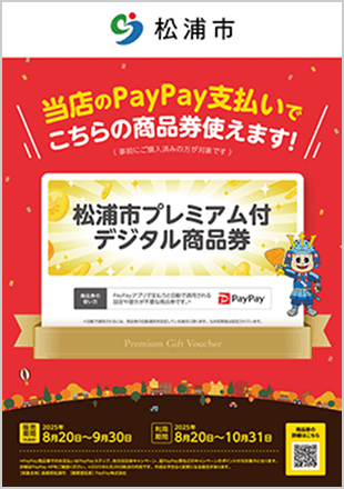 松浦市プレミアム付デジタル商品券取扱店舗でお使いいただけます(一部を除く)。