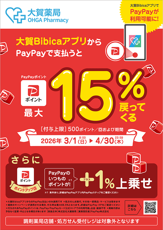 - 株式会社大賀薬局が運営するPayPay加盟店。ただし、一部対象外があります。