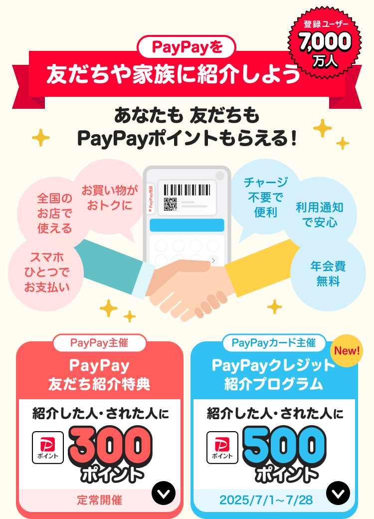 あなたの紹介で友だち・家族がPayPayに登録&条件達成するとポイントがもらえる!