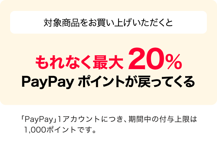 - 付与されるPayPayポイントはPayPay/PayPayカード公式ストアでも利用可能。出金、譲渡不可。