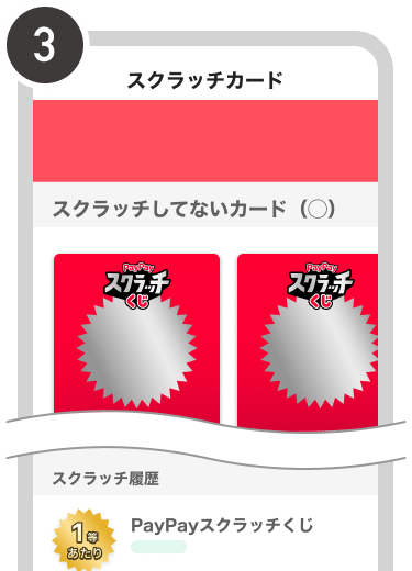 お支払い後にスクラッチカードが表示されない場合はスクラッチカード一覧・または取引履歴からご確認ください。