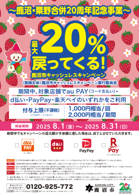 ~鹿沼・粟野合併20周年記念事業~ 最大20%戻ってくる!鹿沼市キャッシュレスキャンペーン