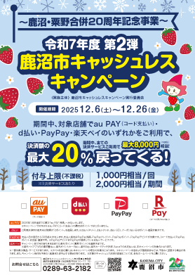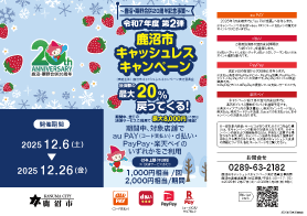~鹿沼・粟野合併20周年記念事業~ 令和7年度 第2弾 鹿沼市キャッシュレスキャンペーン