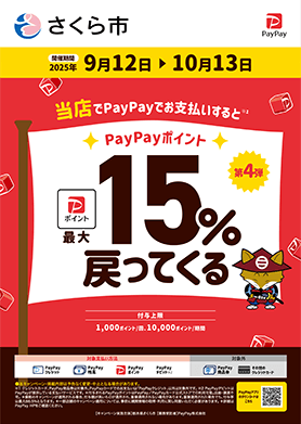 さくら市のお店を応援しよう!PayPayで最大15%戻ってくるキャンペーン!
