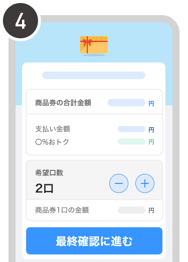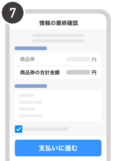 [次へ]を選択→⑤へ使用する商品券は自動で選択され、変更はできません。