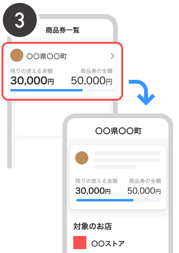 お持ちの商品券の残高、有効期限、利用可能加盟店一覧など詳細をご確認いただけます