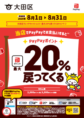 - 東京都大田区内のPayPay加盟店のうちキャンペーンツールの掲出がある店舗です。事前にアプリの「近くのおトク」でもご確認いただけます。