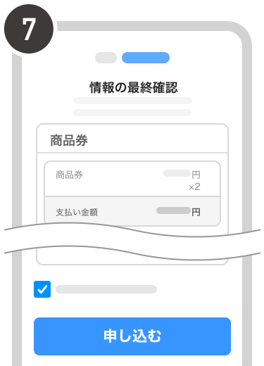 情報に誤りがないか最終確認を行い、チェック項目を確認してチェックを入れたら[申し込む]を選択します