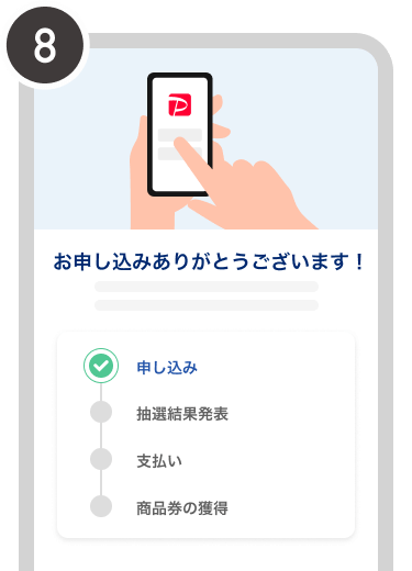 申し込み時にご利用いただいたPayPayアプリ内から「ホーム画面」>「すべて」>「地域商品券」の順に画面遷移後、「品川区プレミアム付デジタル商品券」を選択していただくことで申し込みが完了しているかご確認いただけます。