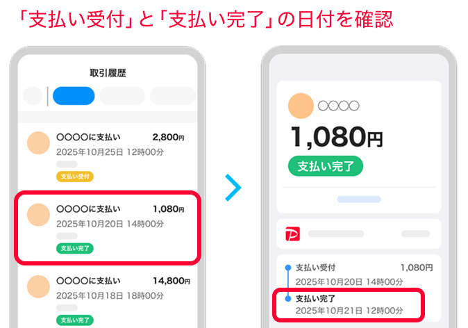 対象の決済が、月をまたいで支払い完了となっているかどうかは、PayPayアプリの取引履歴で確認できます。