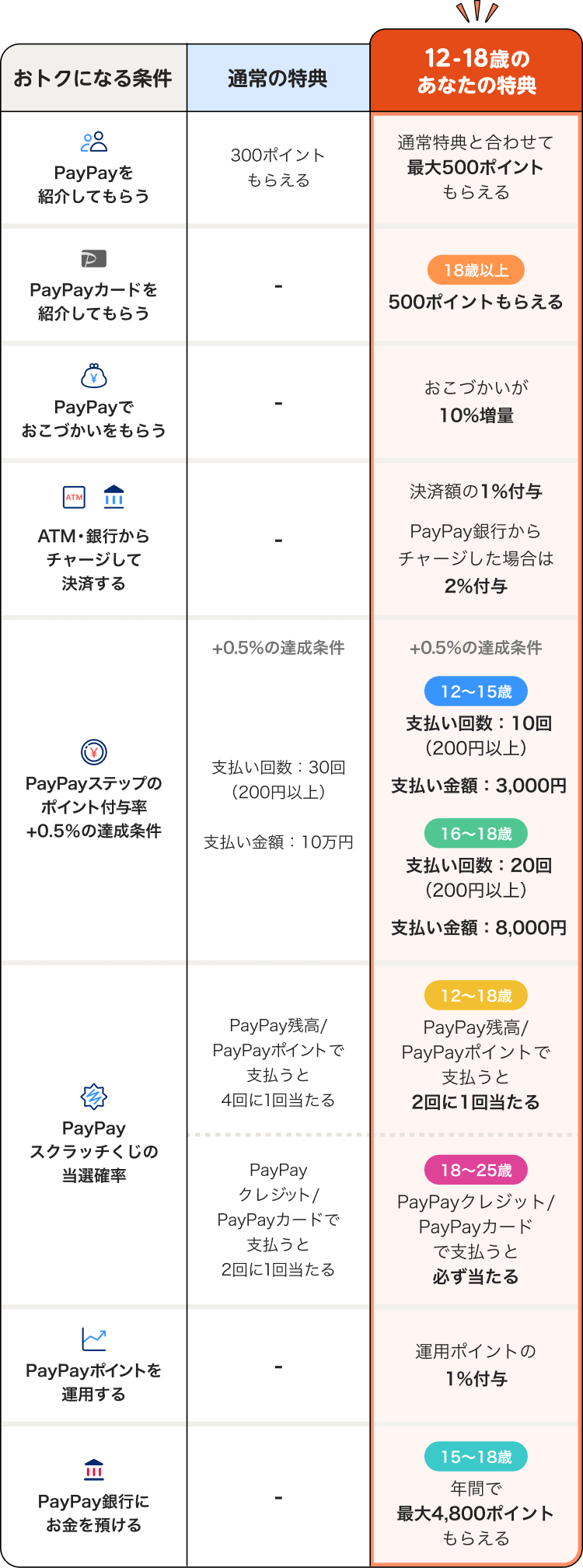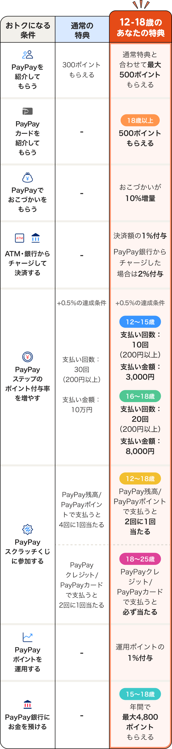 PayPayを使うとおトク!PayPayの本人確認が完了した12-18歳の方なら、200円以上の支払いで当選確率がアップ!(対象外店舗などの条件あり)