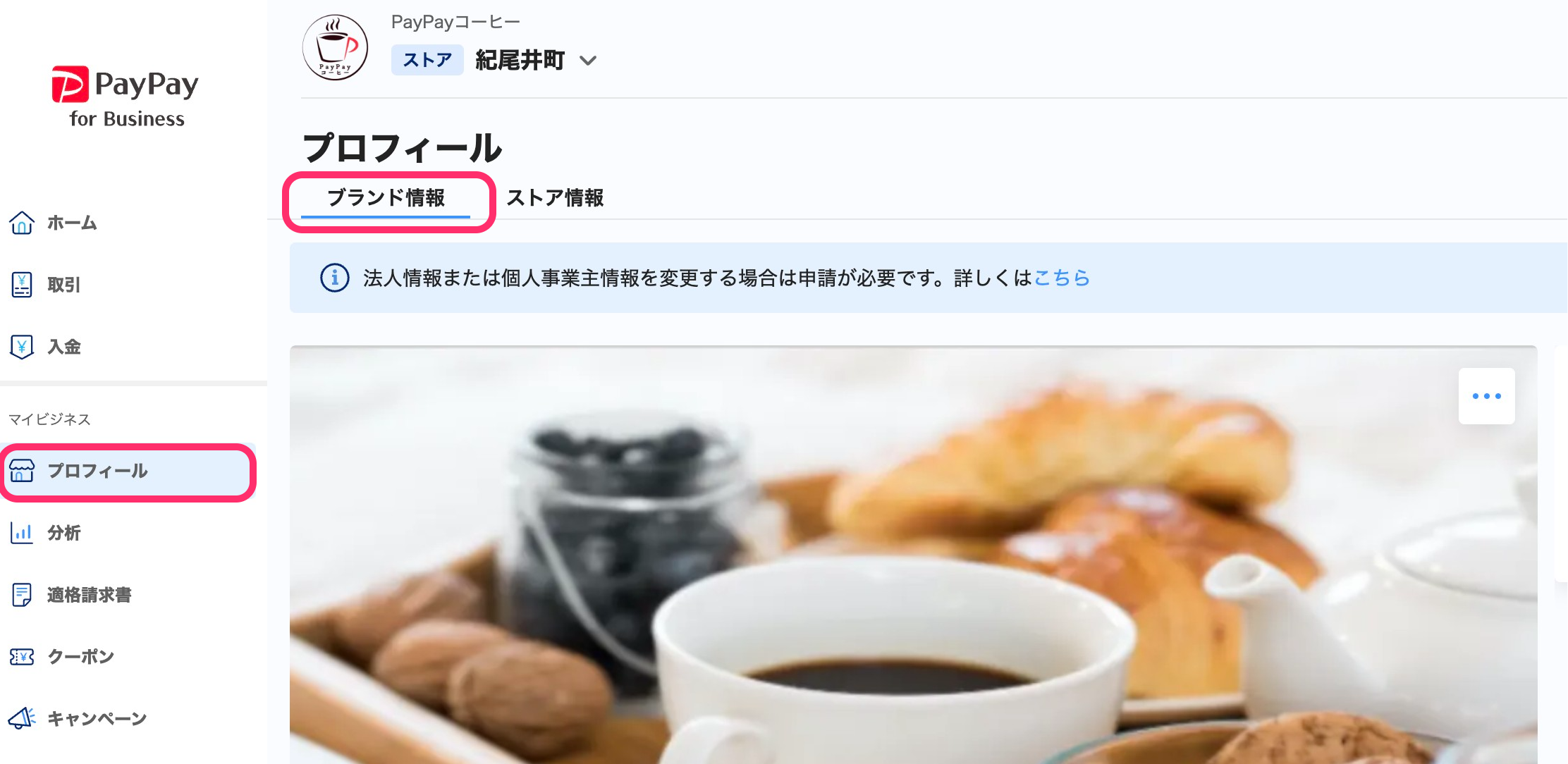 登録している加盟店の情報は、PayPay for Businessで確認できます。