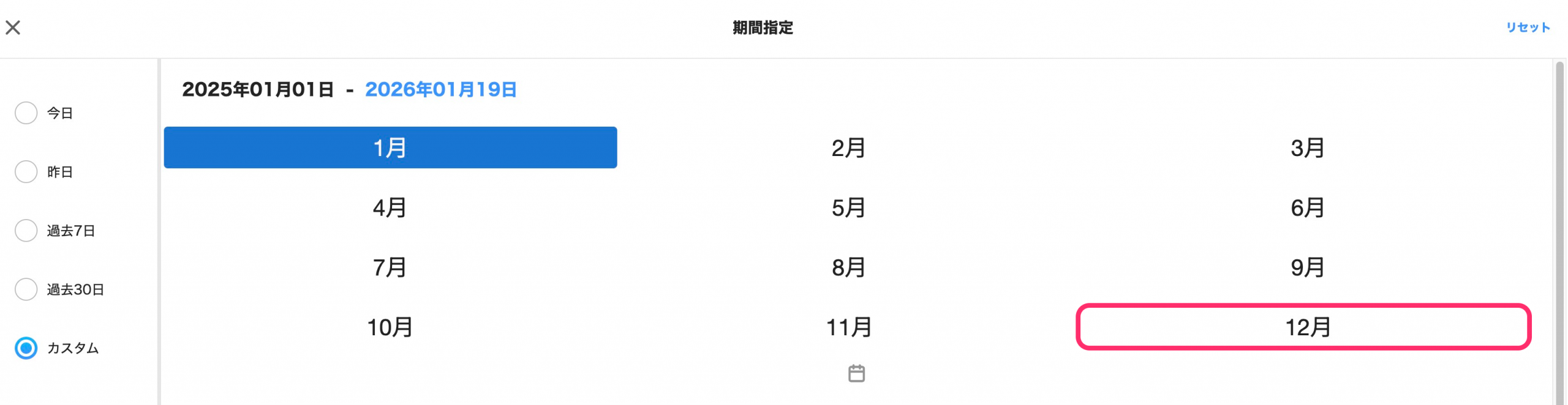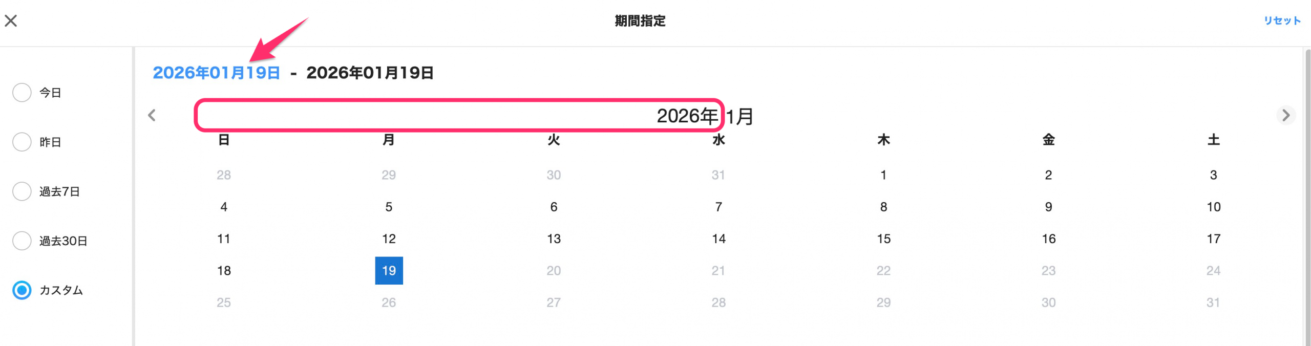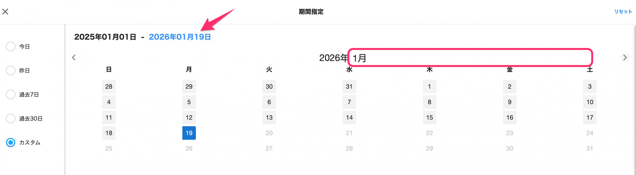 7. 期間指定が反映されたことを確認する