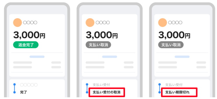 「返金処理完了」「支払い受付の取消」「支払い期限切れ」と表示される場合