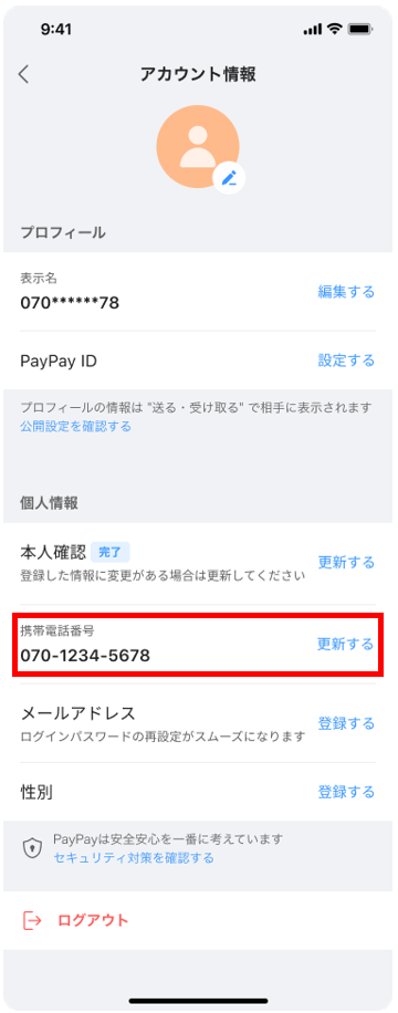 - PayPayアカウントを解約した携帯電話番号には、180日間変更できません。