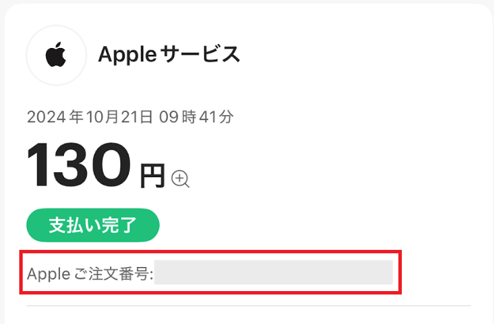 「Appleご注文番号」を控えていただき、以下、Apple公式サイトの購入履歴より該当のご注文番号の取引をご確認ください。