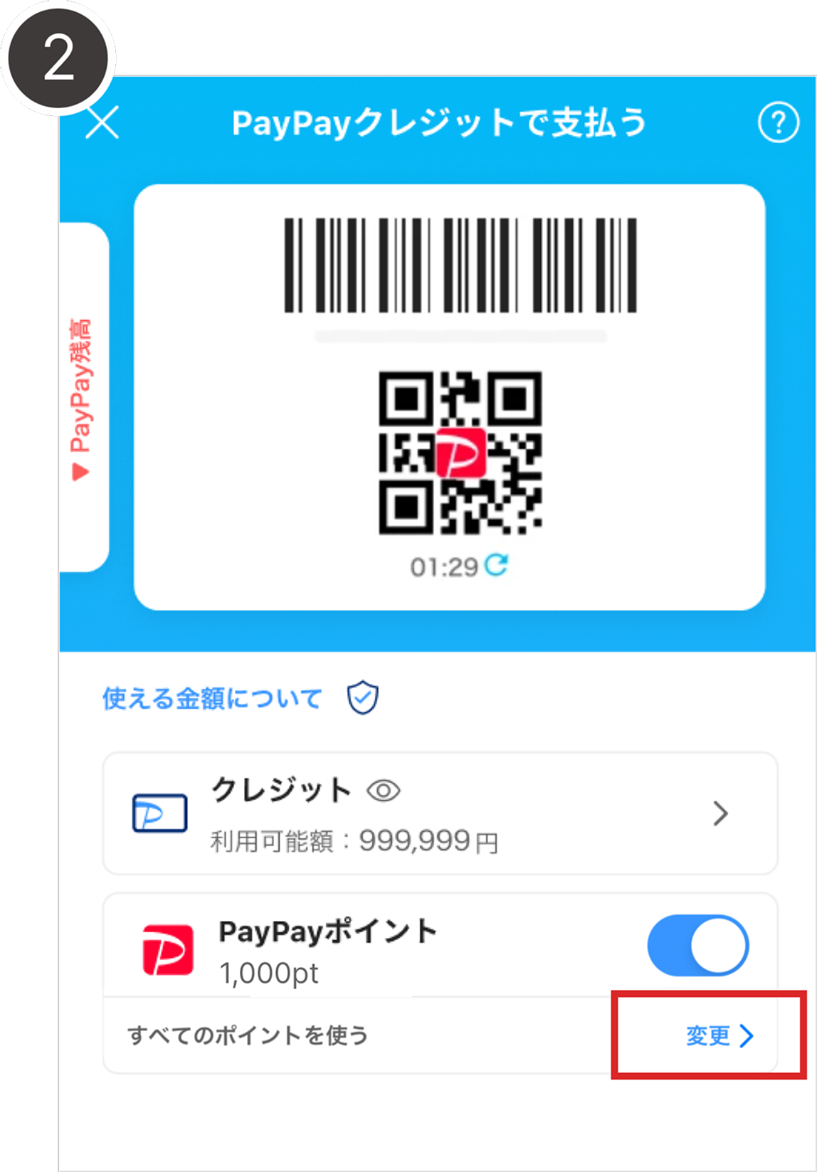 • 1.PayPayポイントをオンに変更