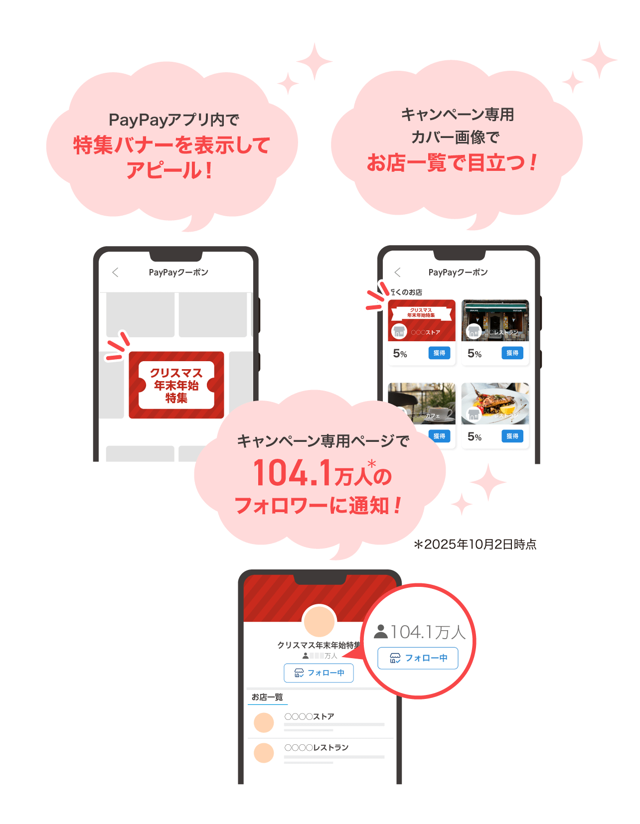 ・「クリスマス&年末年始特集」のPayPayアプリ上への専用バナー掲載は2025年12月から2026年1月の一部期間となります。