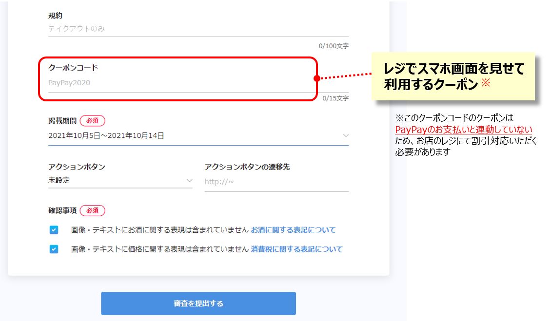 また、PayPayの決済に限定したキャンペーンは景表法違反の可能性がございますので、ご注意ください。