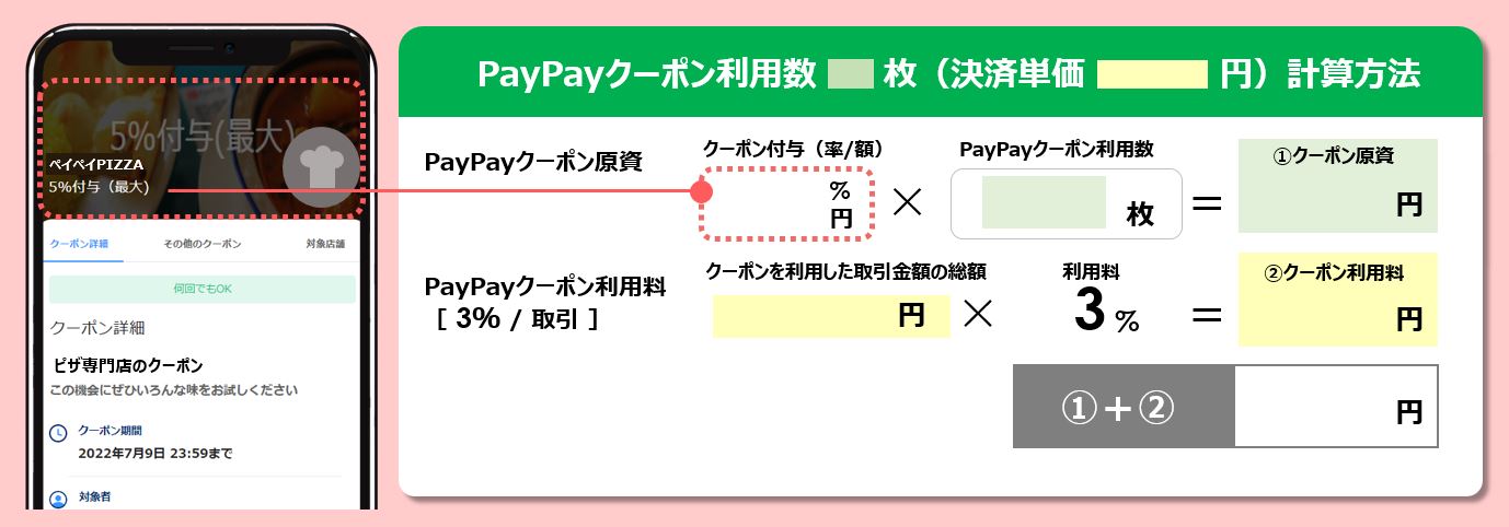 PayPayクーポン利用料は、クーポン適用の取引額に対して生じます。