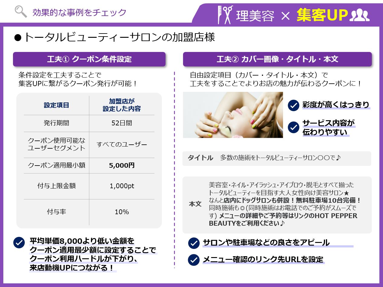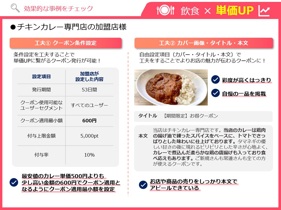 付与率が20%など高くて期間が2週間と短いクーポンより、付与率が5%と抑えめでも期間が1カ月と長いほうが効果が出ています。