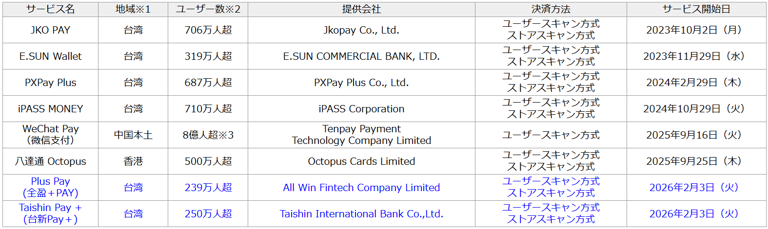HIVEXサービスにおいて、新たに台湾の「Plus Pay(全盈+PAY)」および「Taishin Pay +(台新Pay+)」が追加されましたので、お知らせします。