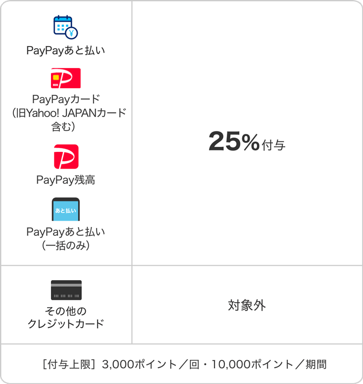 ※ 本キャンペーン、PayPay利用特典および同時開催する他の総付キャンペーンの中で、付与されるPayPayポイントの額が最大となるものが適用されます。当社が指定する場合を除き、それらが重複適用されることはありません。