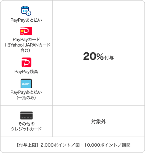 本キャンペーン開催期間中に、対象店舗で「PayPay」で支払うと、最大20%のPayPayポイントが付与されます。