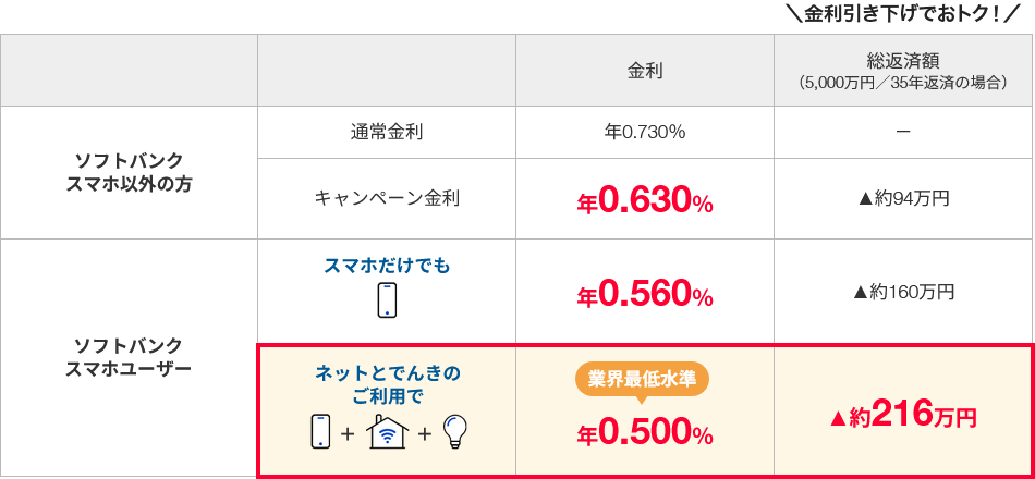 住宅ローン金利引き下げキャンペーン(ソフトバンクユーザー以外)
