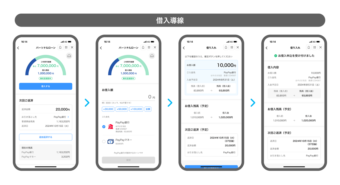 | 借入方法 | ・PayPay銀行普通預金口座への入金 ・「PayPay残高(PayPayマネー)」へのチャージ |
