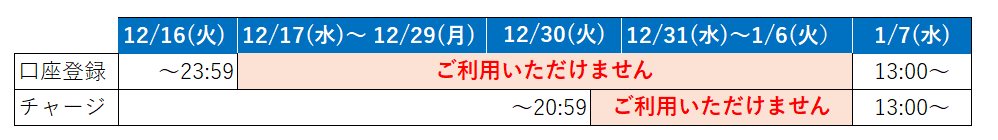 口座登録 :2025年12月17日(水) 0:00から2026年1月7日(水)12:59まで