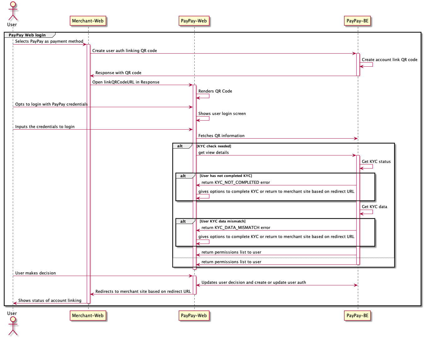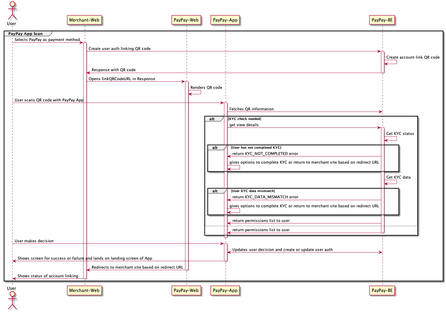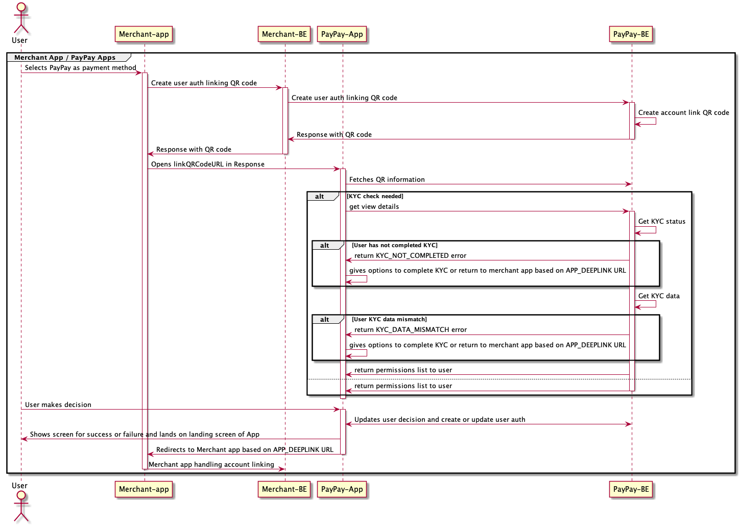 On PayPay, to have smooth account linking process QR code based flow is added. Here merchant will create a ACCOUNT LINK QR and display it to the user. User will have to scan QR code with login to his/her PayPay account or login with credentials to authorize OPA client.
