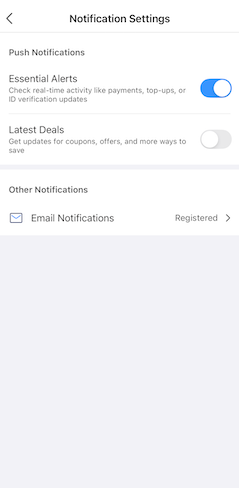 In order to receive the user notifications, it is necessary to turn on "Essential Alerts" in the Notification Settings of the PayPay app.